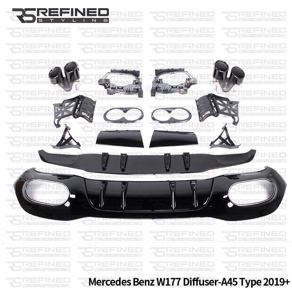 FOR MERCEDES A CLASS W177 AMG A45 A45S LOOK REAR DIFFUSER TAILPIPES GLOSS BLACK